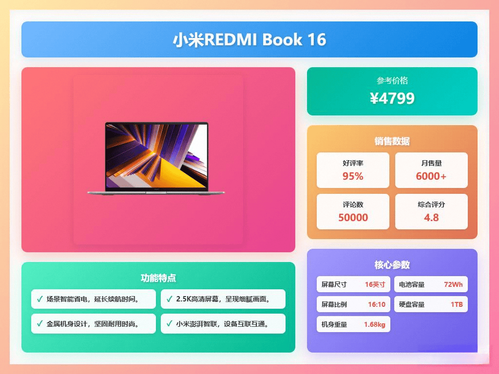 16屏幕本质线英寸大屏这REDMI Book,是办公不管,追剧仍是,够爽都!0%sRGB高色域并且它还具有10,示细腻颜色显,力没得说画面体现,做计划都挺靠谱用来看照片、。