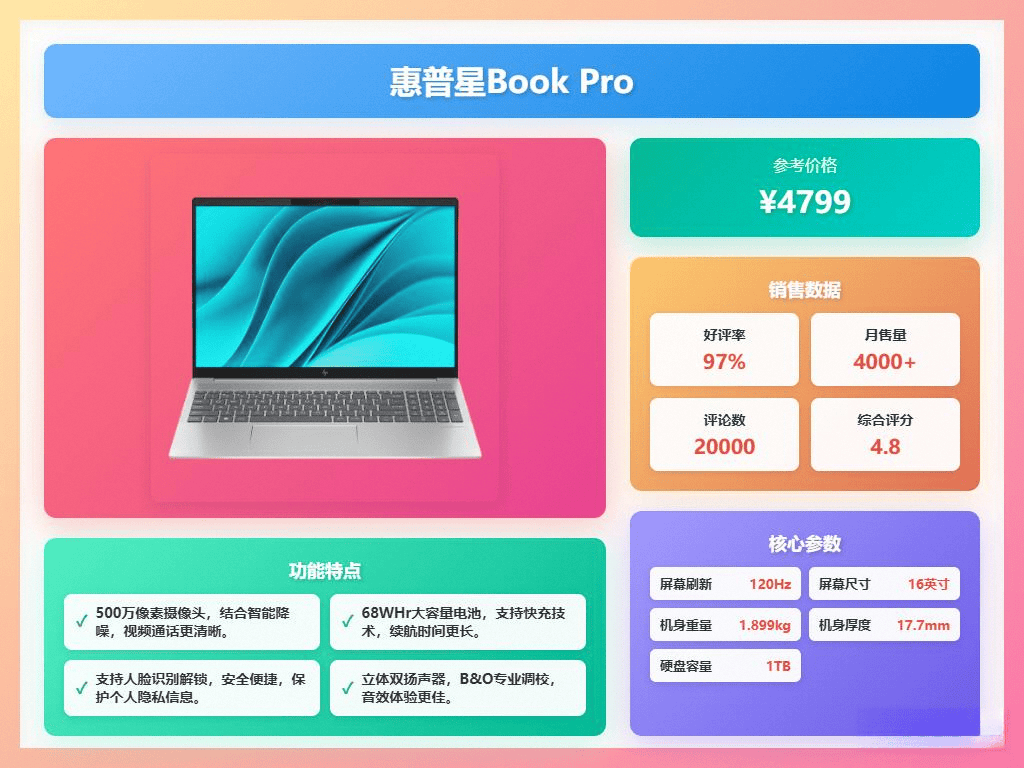 不断以立异和品格著称惠普正在札记本电脑范畴,遮盖通常产物线,同用户的需求旨正在满意不。其佻薄便携和高职能的联结星Book Pro系列以,消费者的亲爱得到了不少。