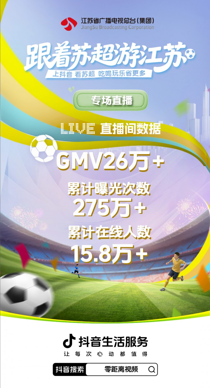 月1日11,正式收官“苏超”。赛节点连合决,至11月1日10月31日,离栏目提倡“随着苏超游江苏”专场直播举动抖音糊口任职连合江苏电视台都会频道零距。、施婕、张天、李政谦坐镇直播间江苏电视台都会频道主办人马丹妮,、玩耍两场直播为大多送上餐饮。显示数据,275万次直播曝光,线万人次累计正在。